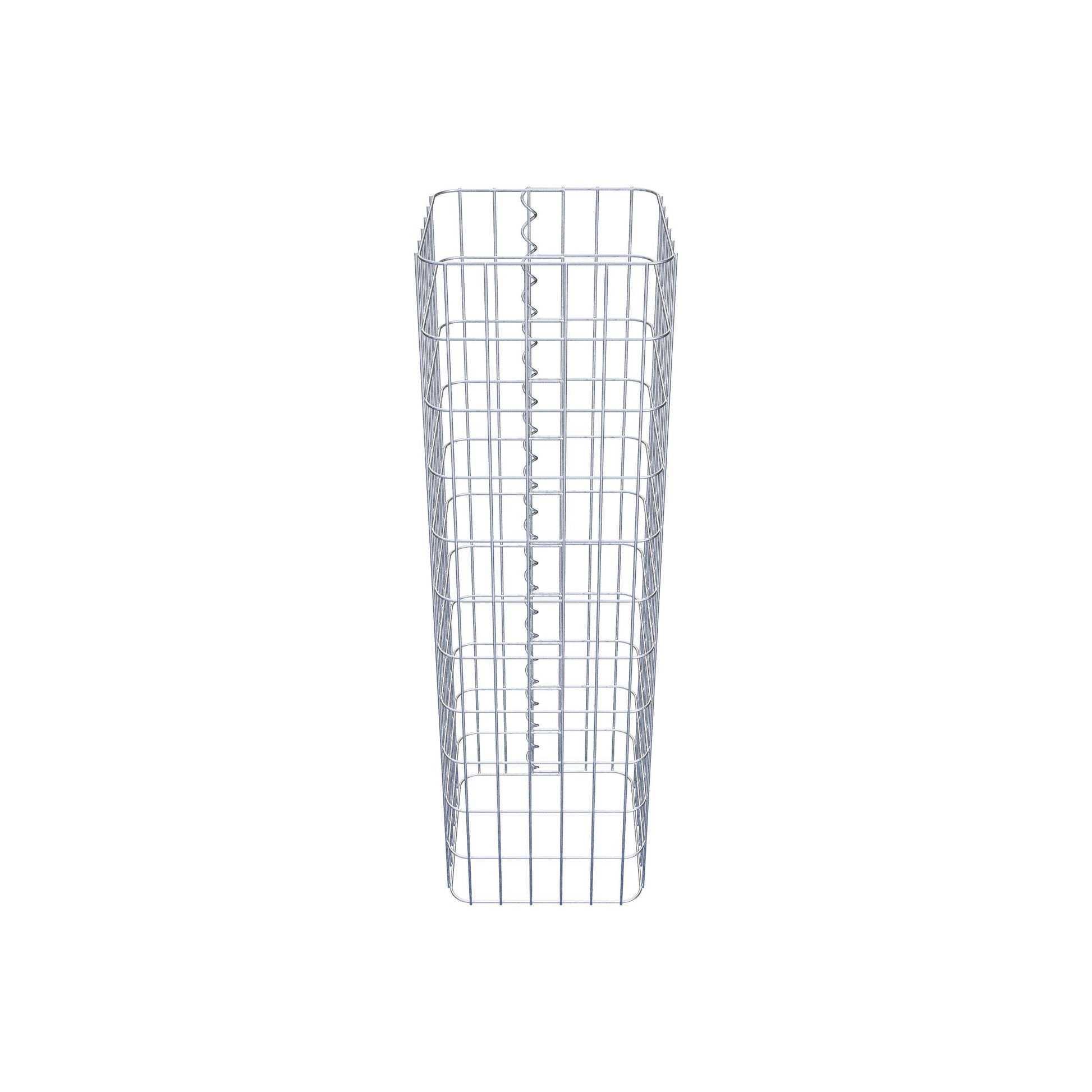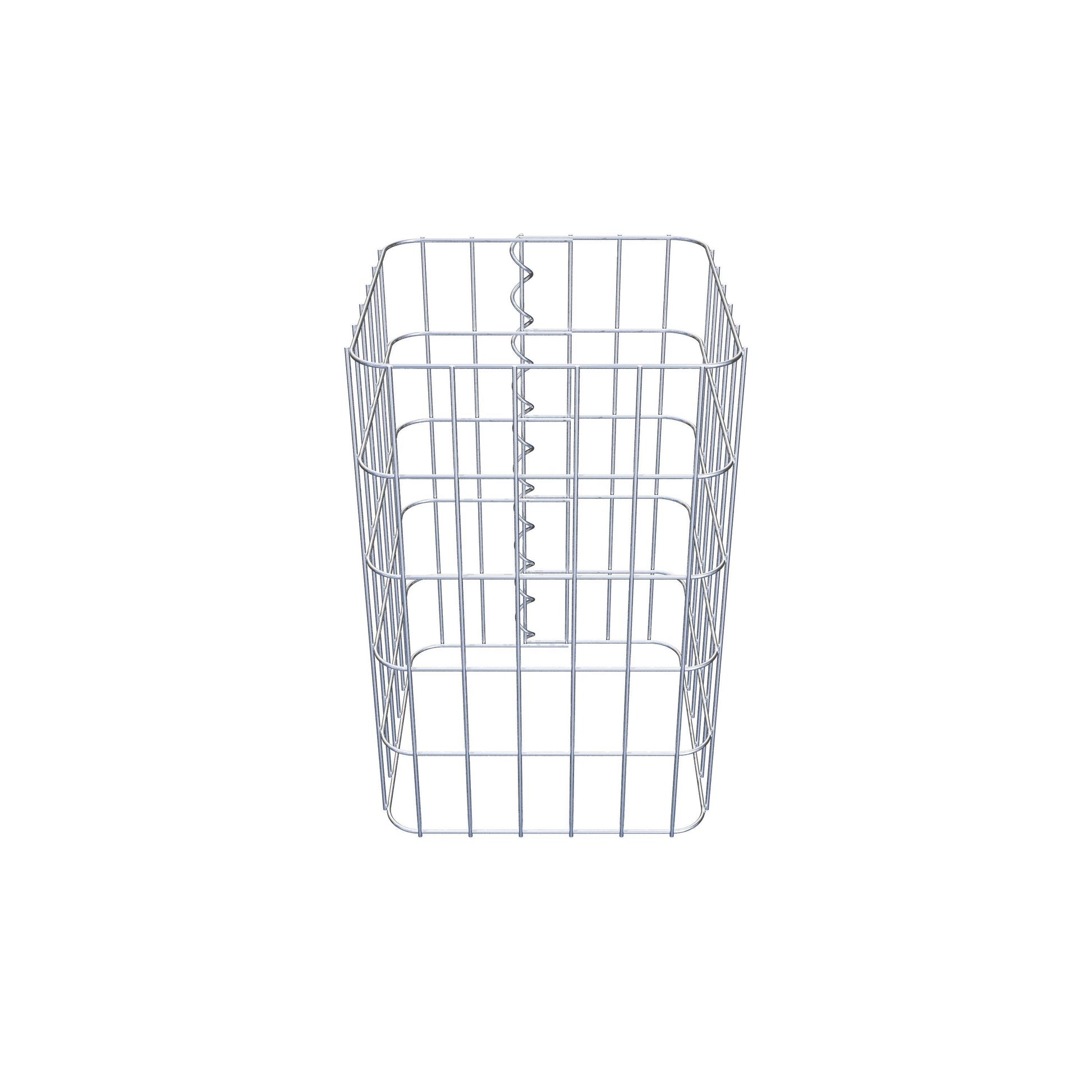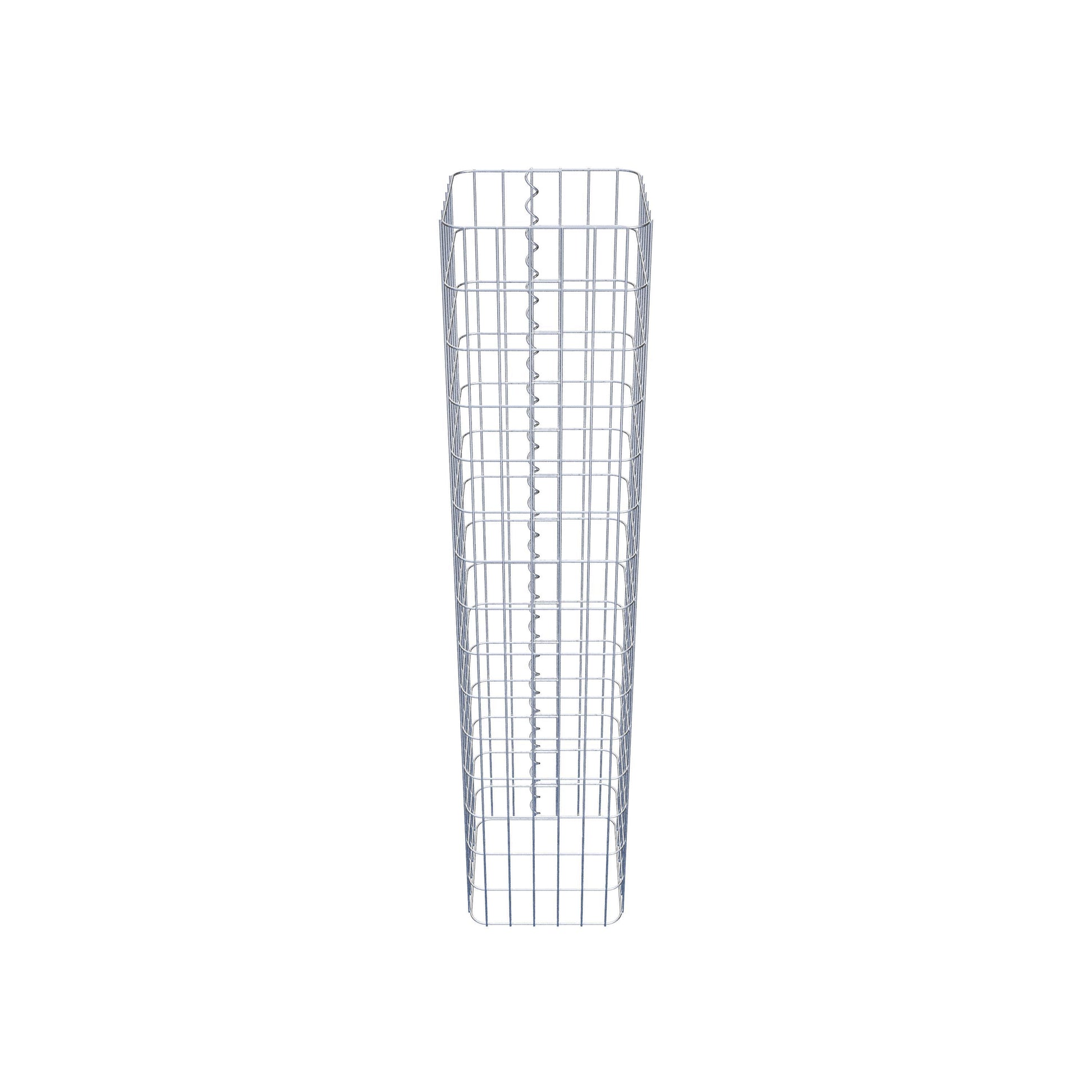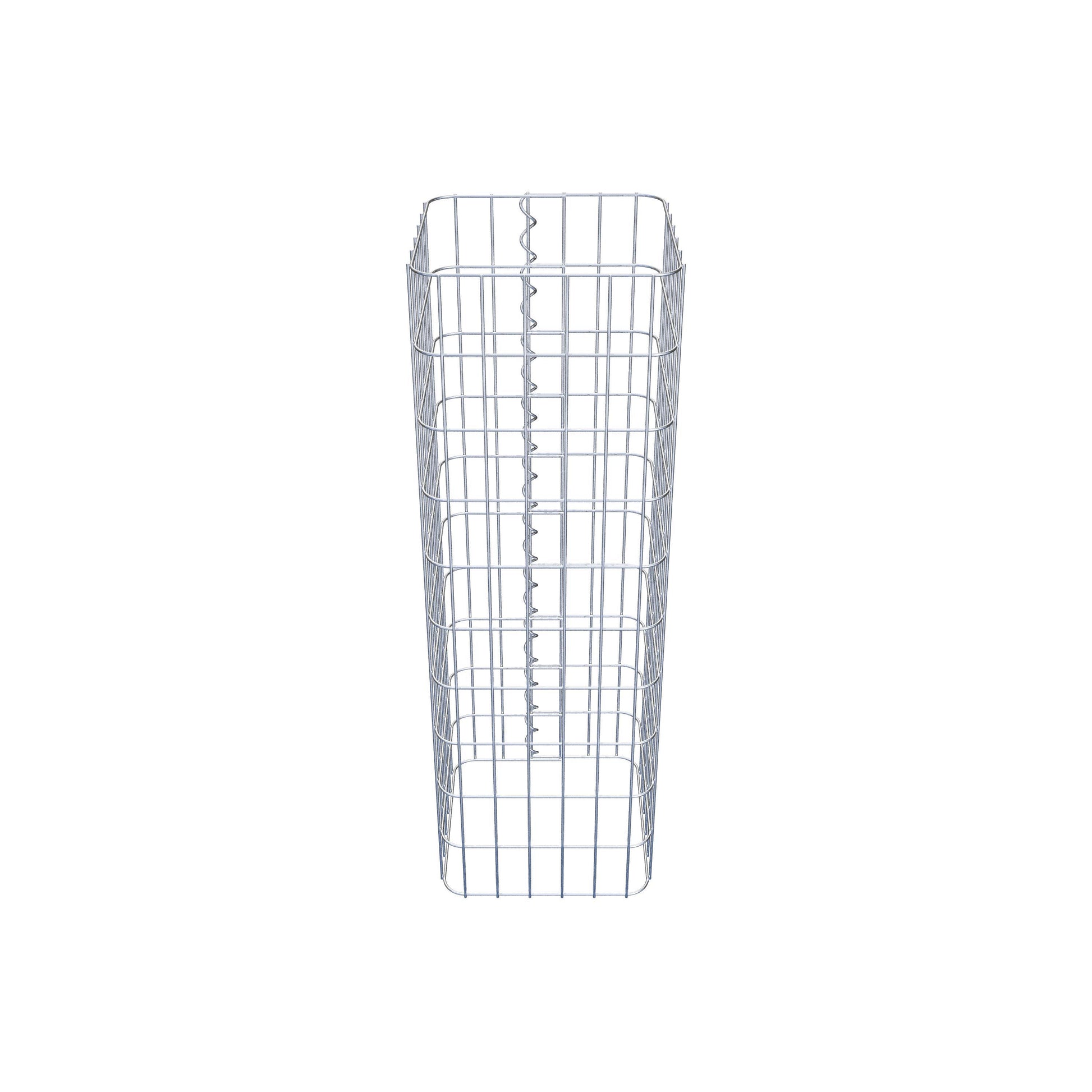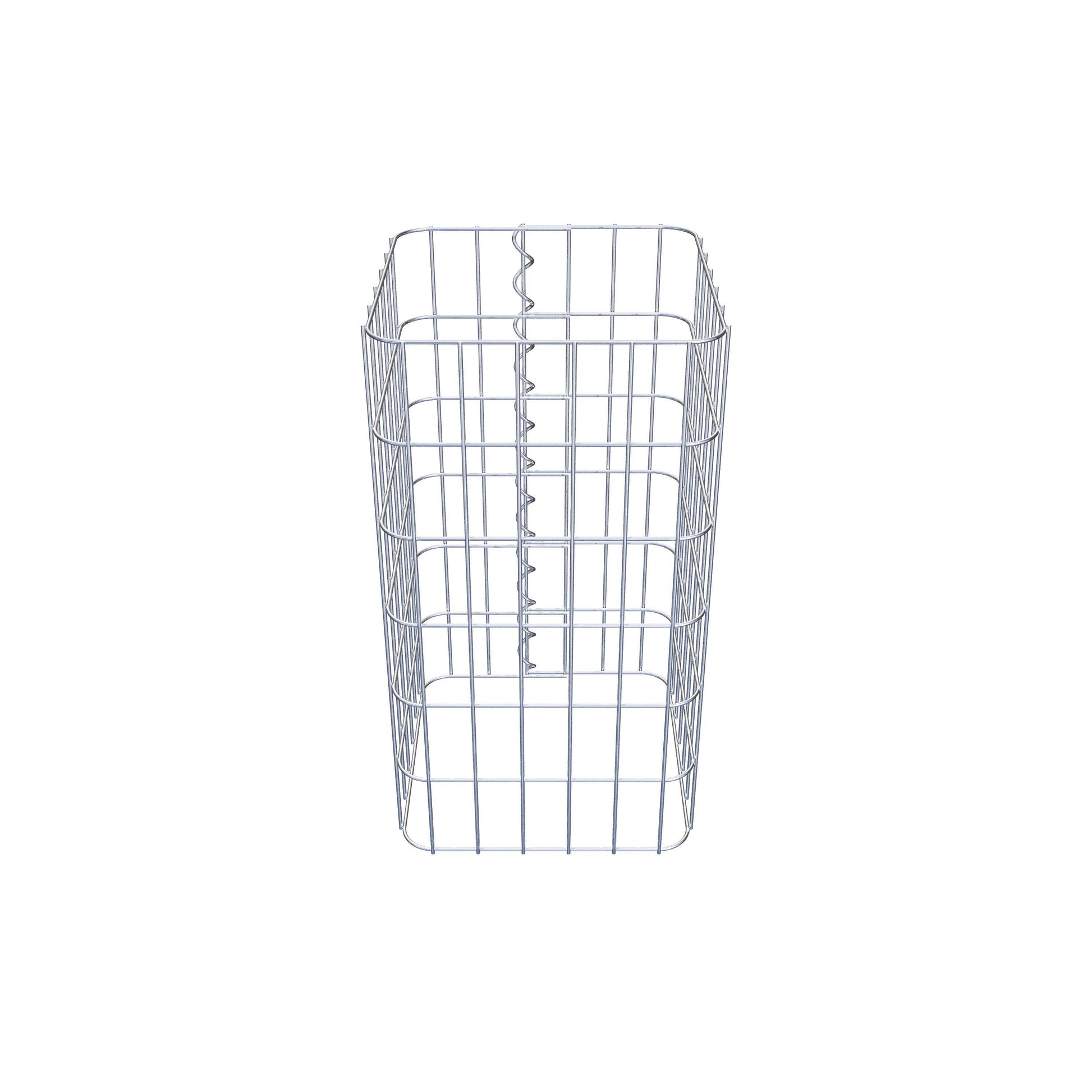 Der seitliche Verschluss erfolgt an der einzigen Überlappungsstelle des Gitters mit einer Spirale, die einfach eingedreht und zusammengedrückt wird. So entsteht eine saubere, sichere und dauerhafte Verbindung. Alternativ kann die Gabionensäule auch mit Klammern verschlossen werden, die separat erhältlich sind. Die Säulen sind nach oben und unten offen – ein Bodengitter oder Deckel ist nicht erforderlich und daher nicht im Lieferumfang enthalten. Bei Bedarf kann ein Deckel zusätzlich erworben werden.