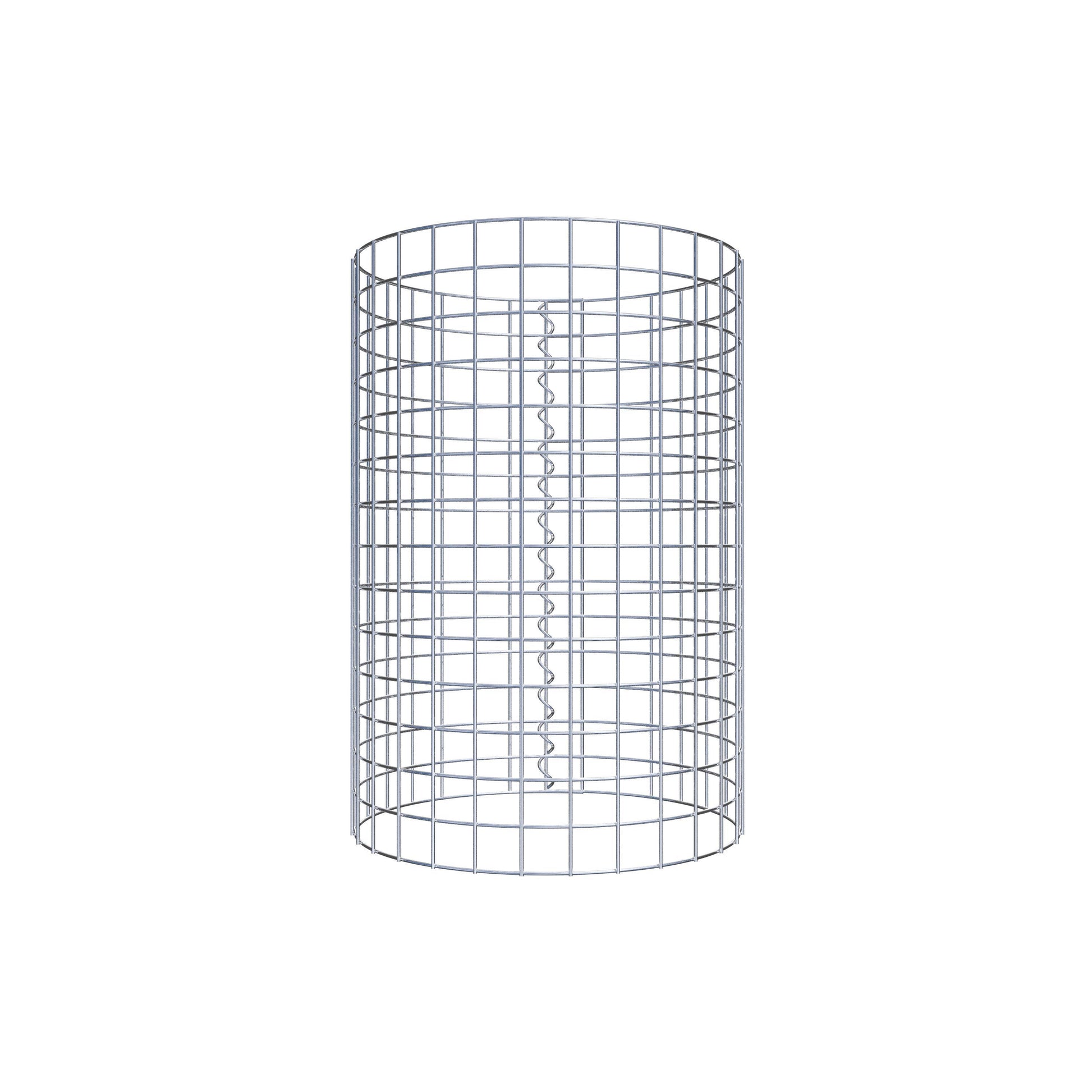 Der seitliche Verschluss erfolgt an der einzigen Überlappungsstelle des Gitters mit einer Spirale, die einfach eingedreht und zusammengedrückt wird. So entsteht eine saubere, sichere und dauerhafte Verbindung. Alternativ kann die Gabionensäule auch mit Klammern verschlossen werden, die separat erhältlich sind. Die Säulen sind nach oben und unten offen – ein Bodengitter oder Deckel ist nicht erforderlich und daher nicht im Lieferumfang enthalten.