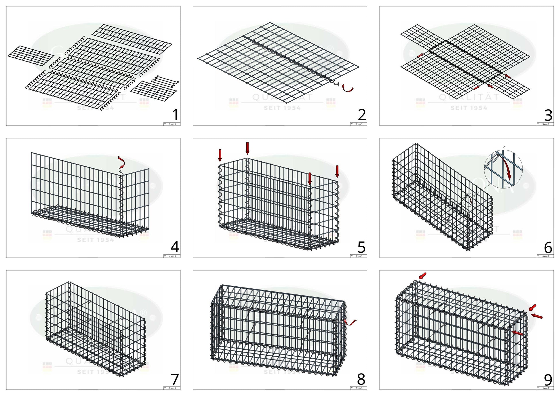 El volumen de suministro incluye 12 rejillas por gavión, espirales para la conexión y espaciadores para estabilizar la forma.