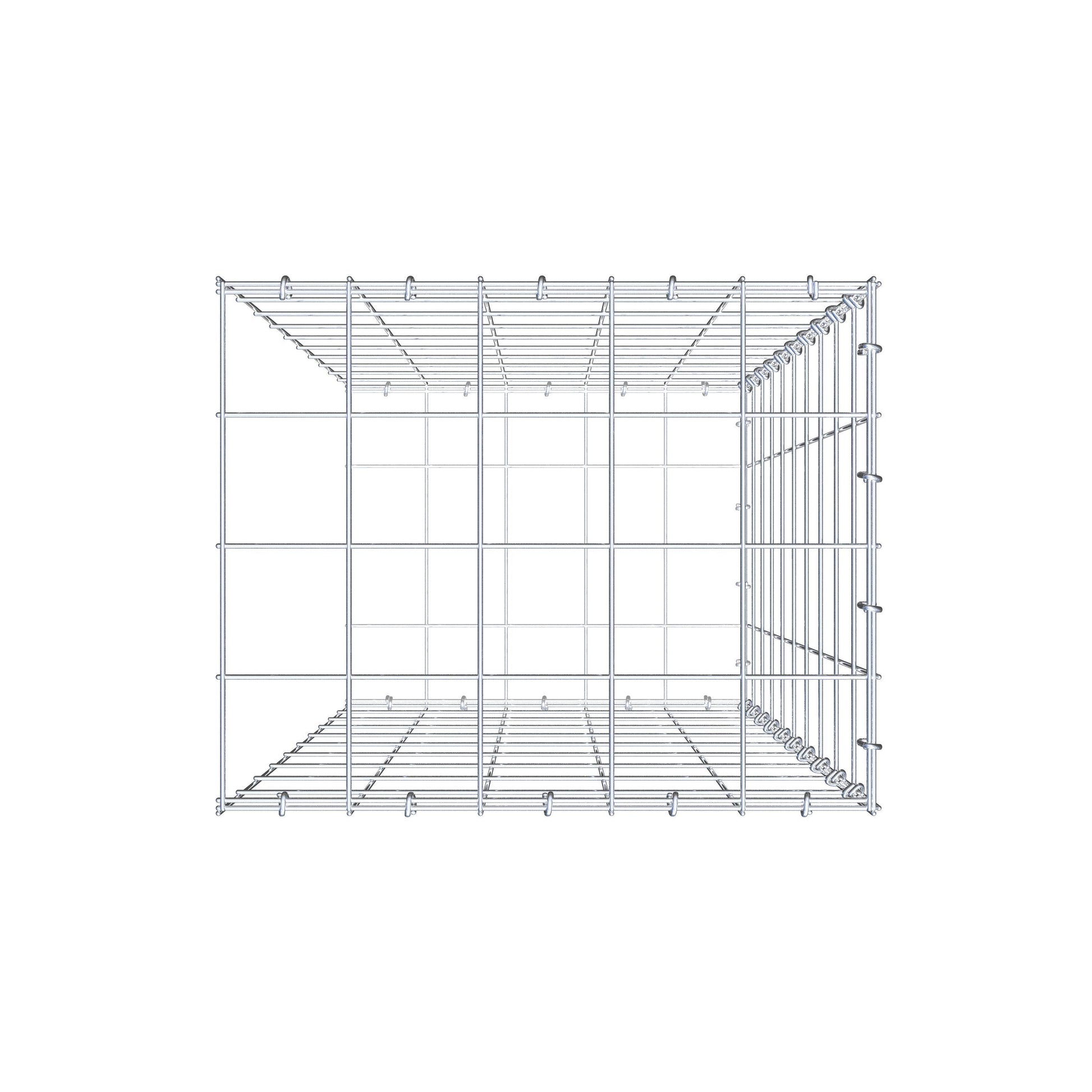 Bei dieser Gabione fehlt ein Stirngitter. Das ermöglicht Ihrer Gabione in die Länge zu wachsen.