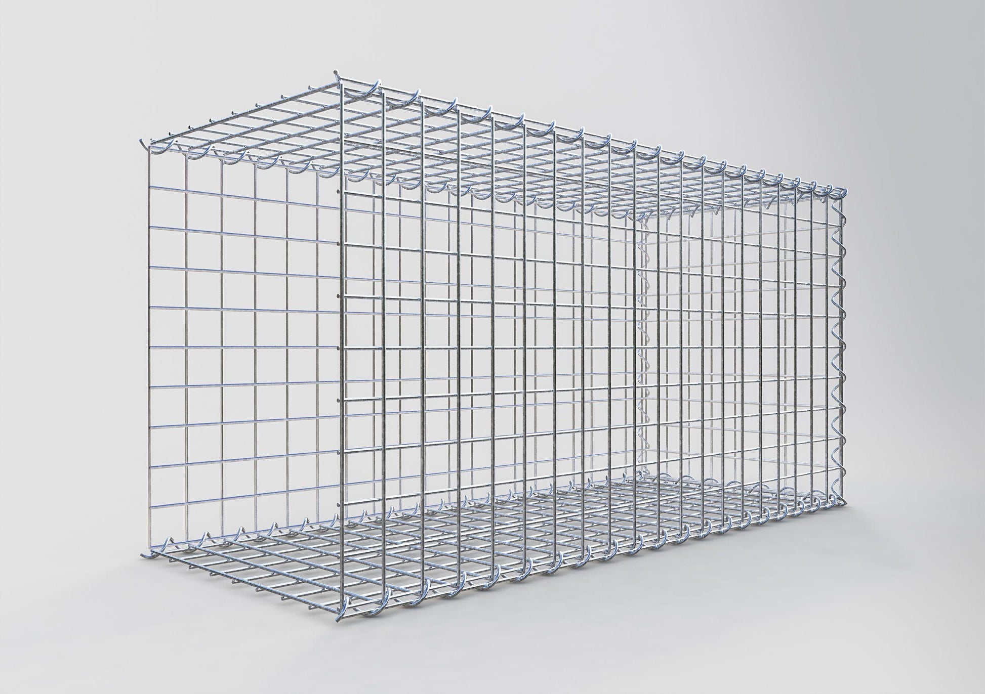 Bei dieser Gabione fehlt ein Stirngitter. Das ermöglicht Ihrer Gabione in die Länge zu wachsen. Bitte beachten Sie, dass die