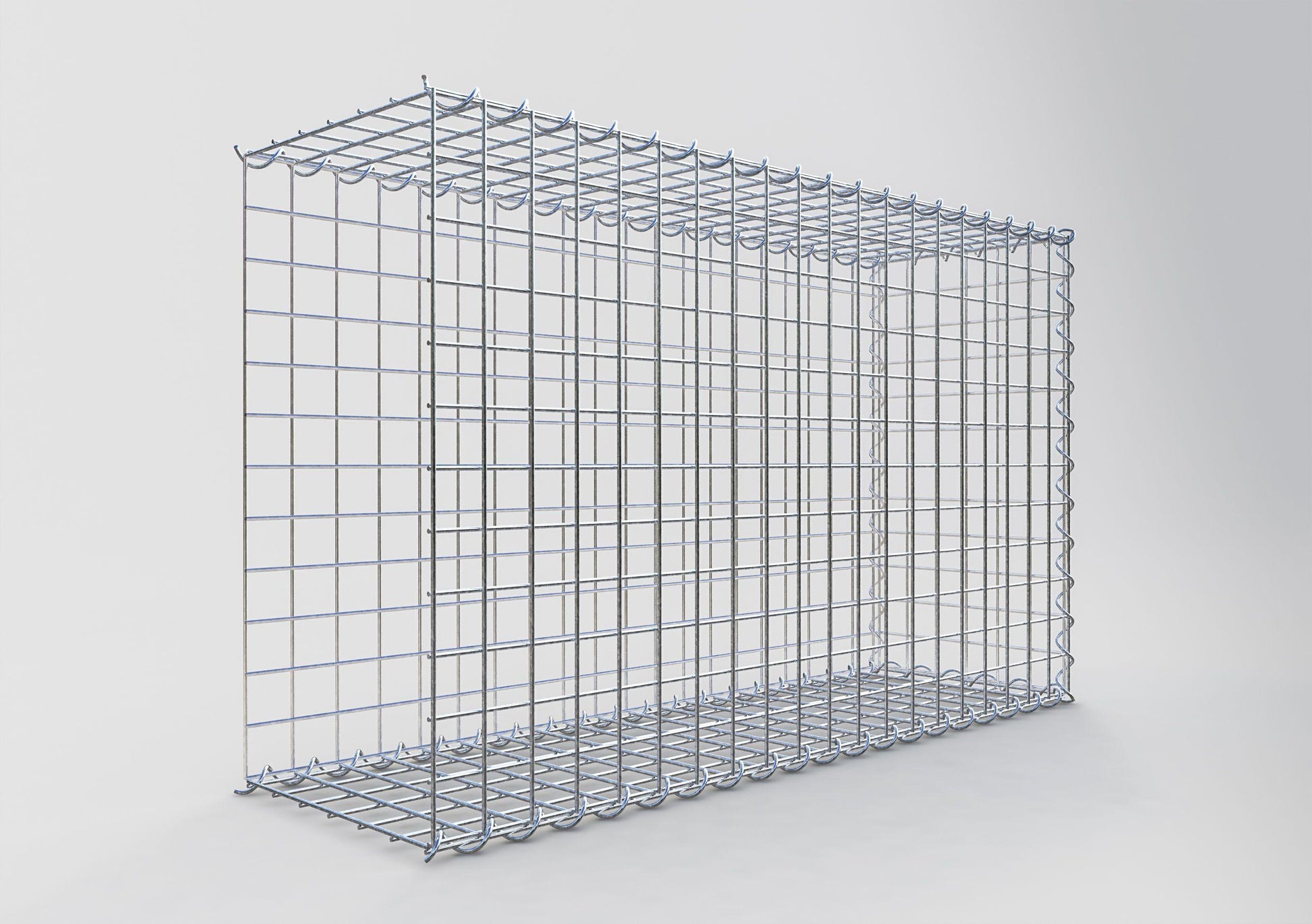 Bei dieser Gabione fehlt ein Stirngitter. Das ermöglicht Ihrer Gabione in die Länge zu wachsen. Bitte beachten Sie, dass die