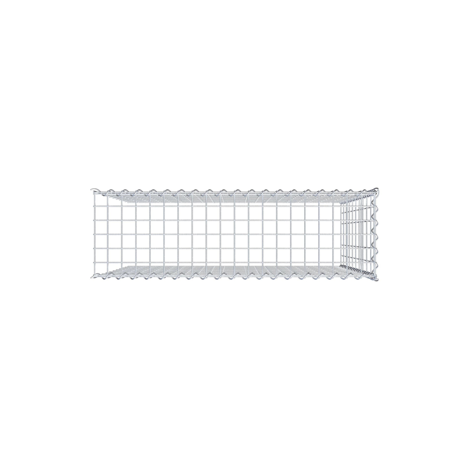 - Remarque : pas de propre grille de fond ni de grille frontale - la liaison se fait par la grille du couvercle et la fermeture du gabion inférieur ainsi que par la fermeture du gabion latéral.
