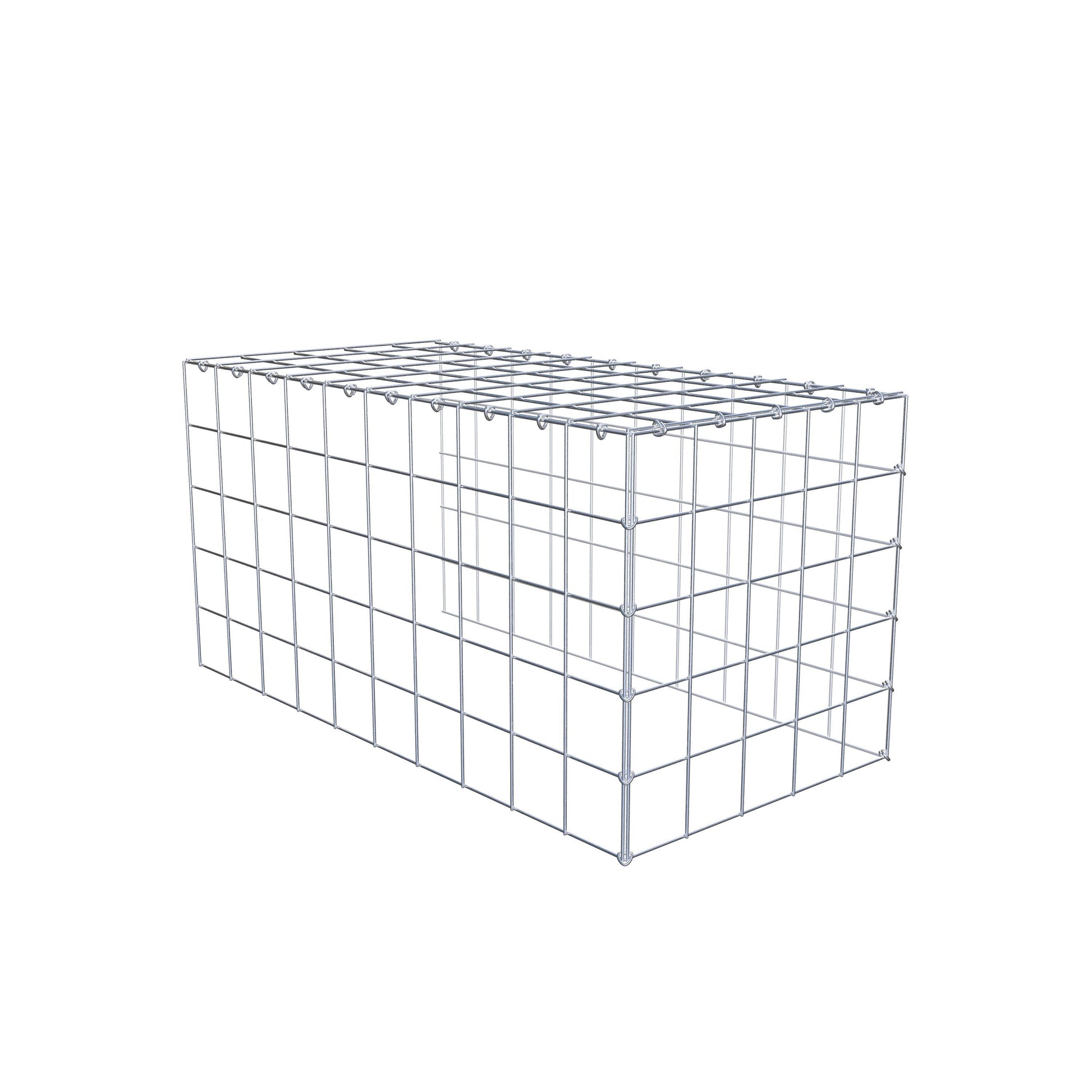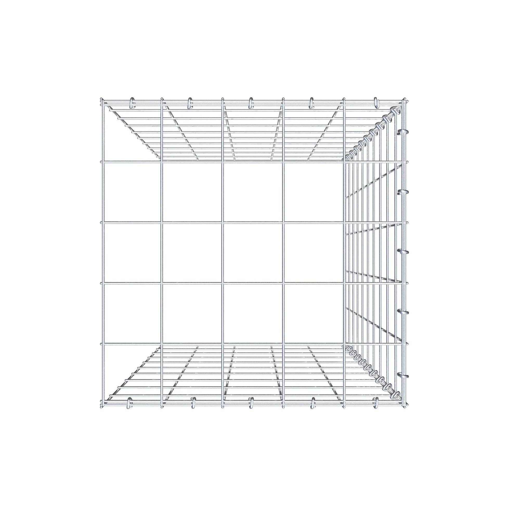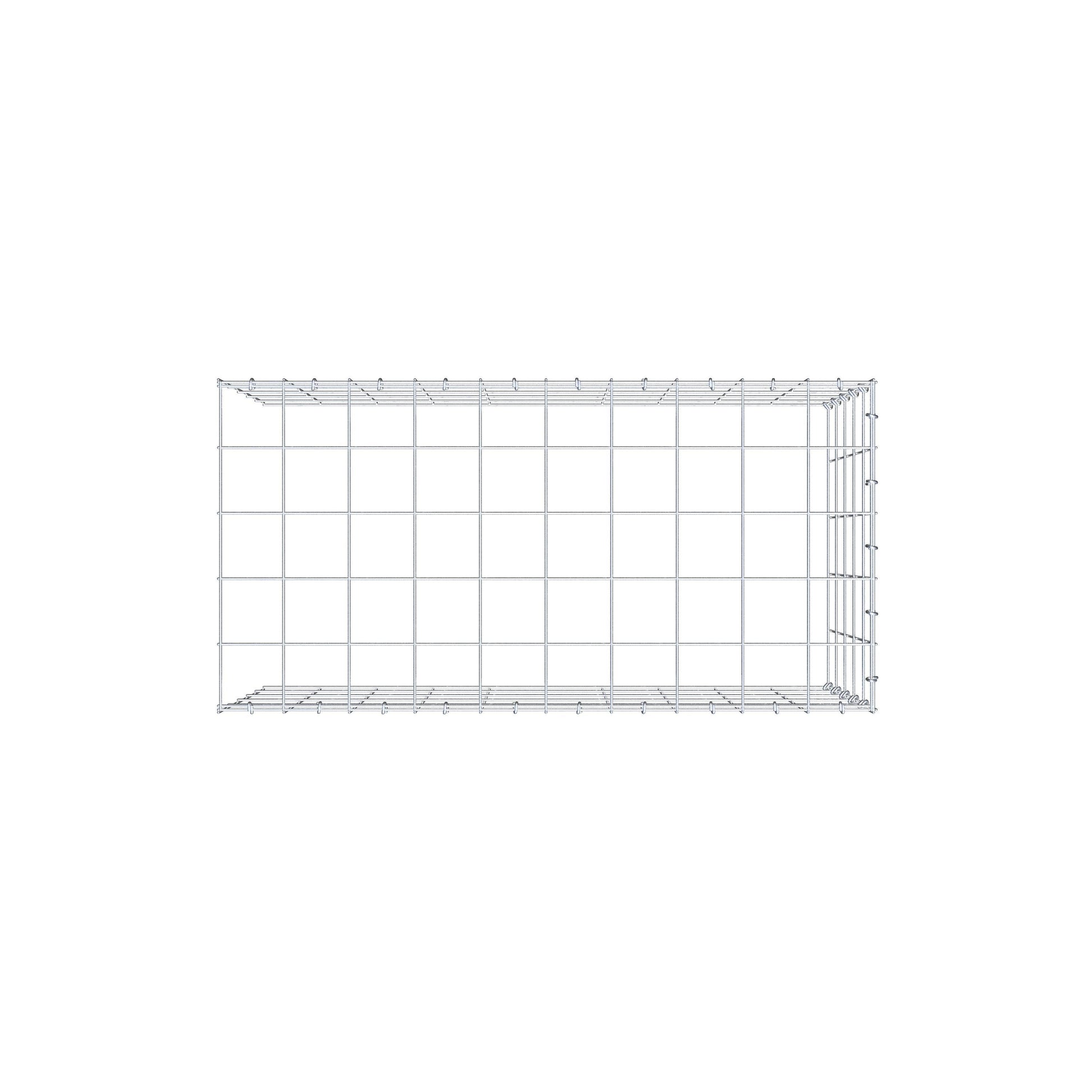 - Remarque : pas de propre grille de fond ni de grille frontale - la liaison se fait par la grille du couvercle et la fermeture du gabion inférieur ainsi que par la fermeture du gabion latéral.