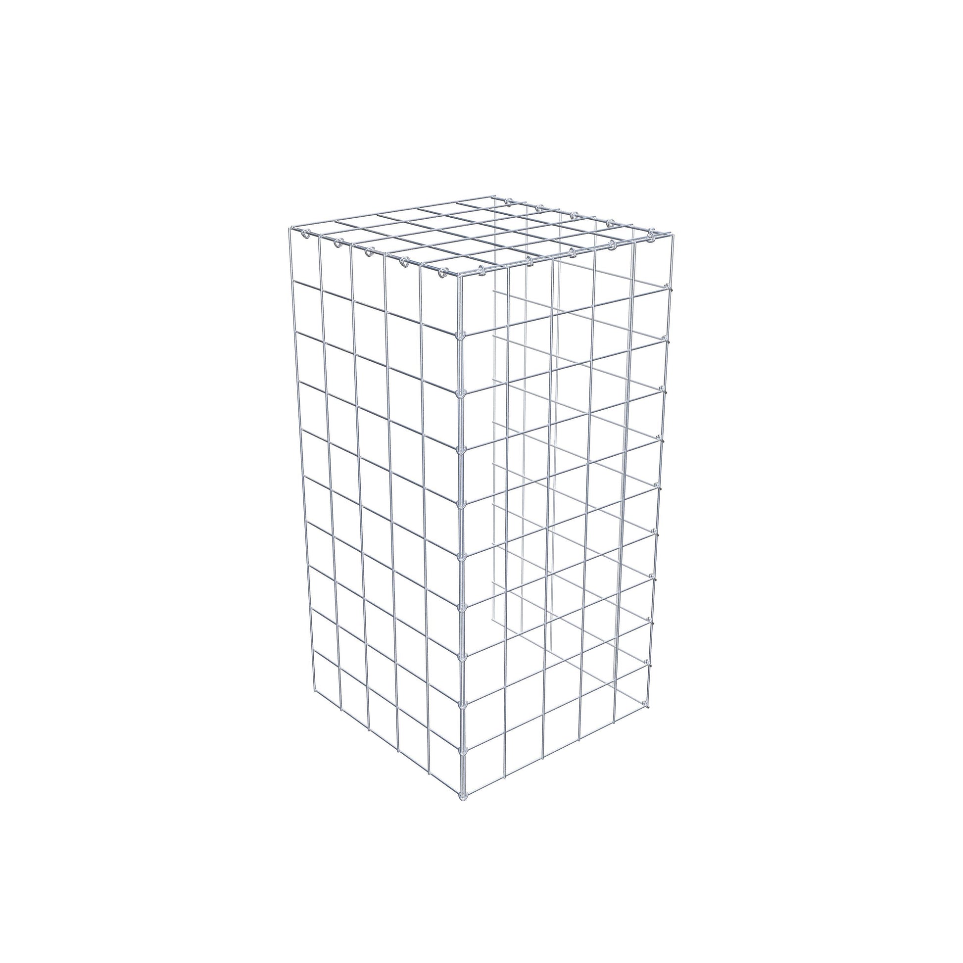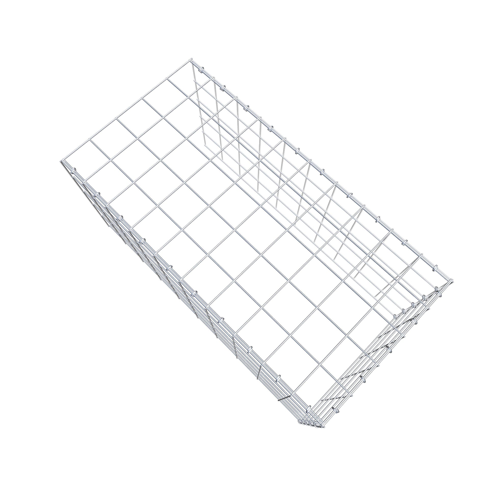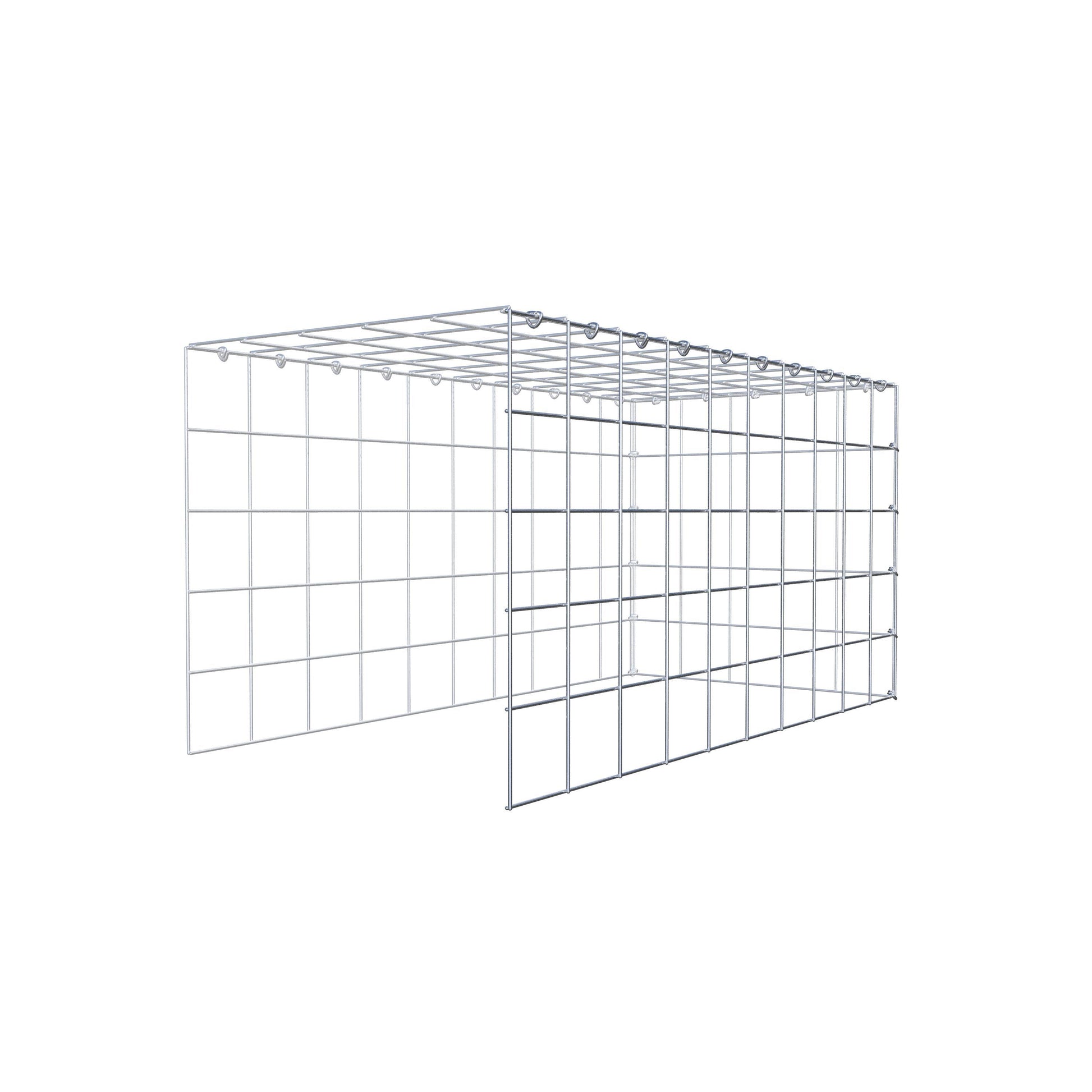 - Remarque : pas de propre grille de fond ni de grille frontale - la liaison se fait par la grille du couvercle et la fermeture du gabion inférieur ainsi que par la fermeture du gabion latéral.