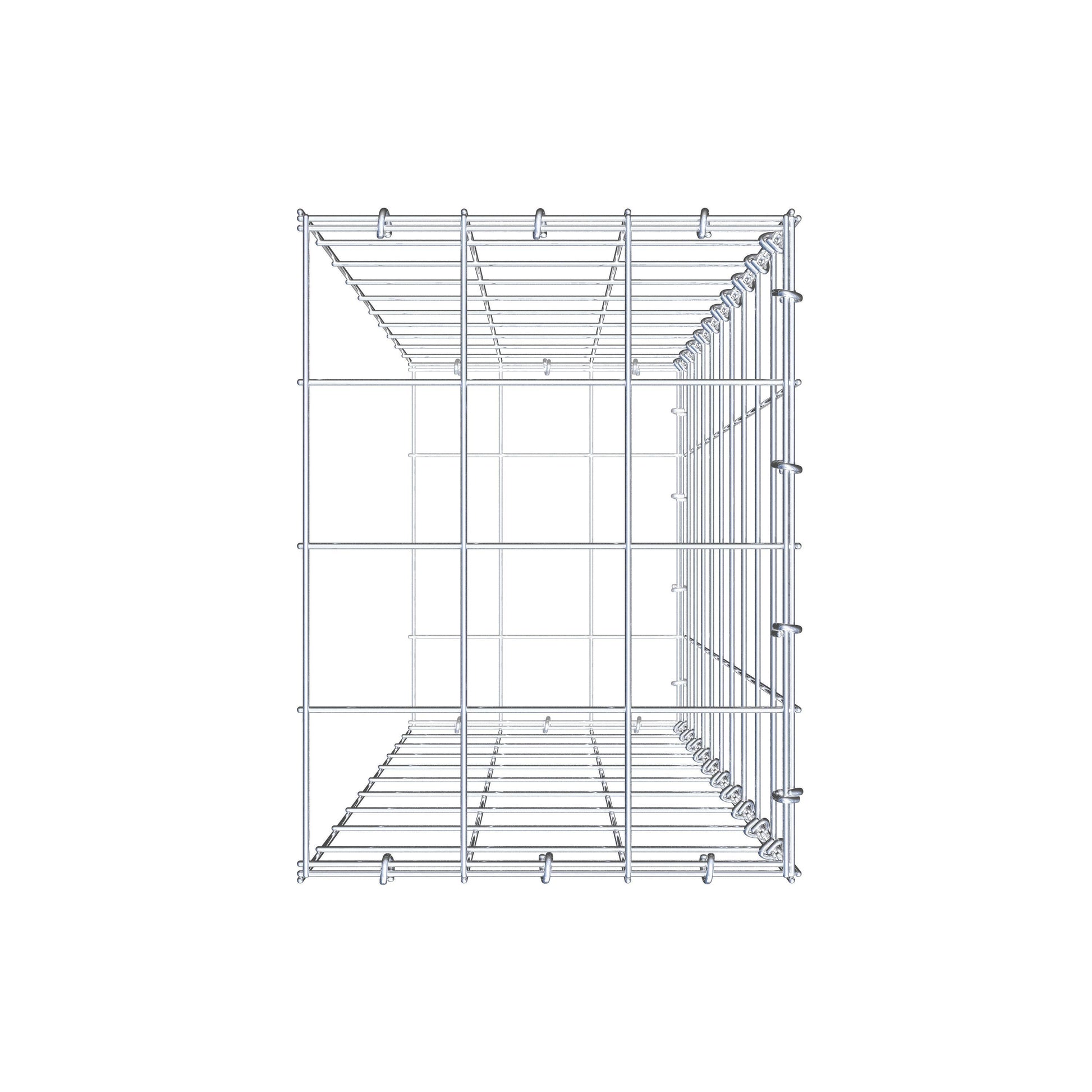 Este gabião não tem grade frontal. Isso permite que seu gabião cresça em comprimento.