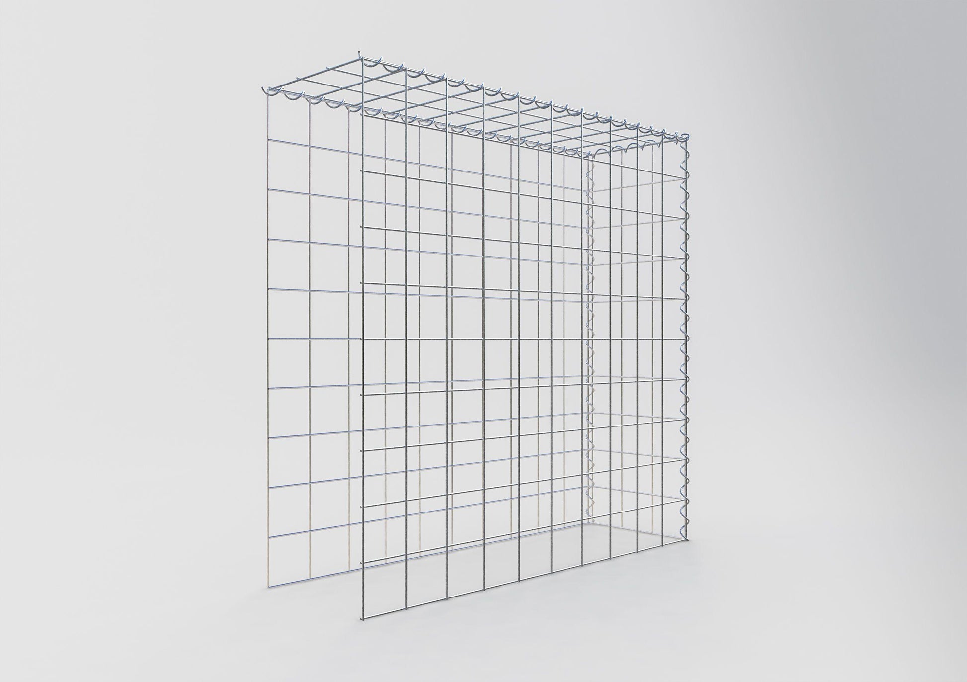 Este gabião não tem grade frontal e inferior. Isso permite que seu gabião cresça tanto em comprimento quanto em altura. Observe que o