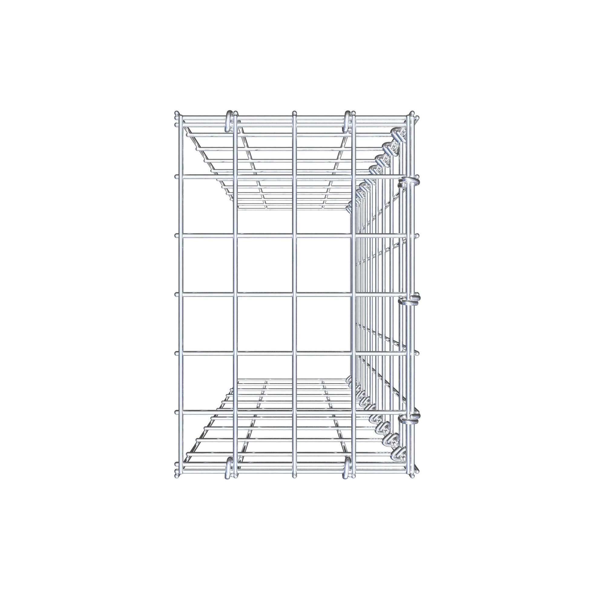 Este gabião não tem grade frontal e inferior. Isso permite que seu gabião cresça tanto em comprimento quanto em altura.
