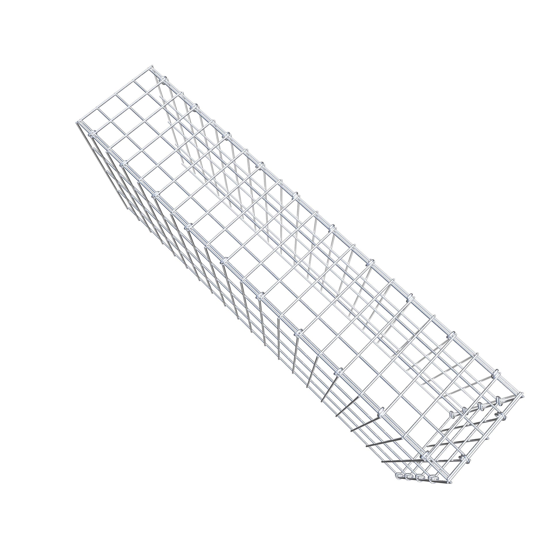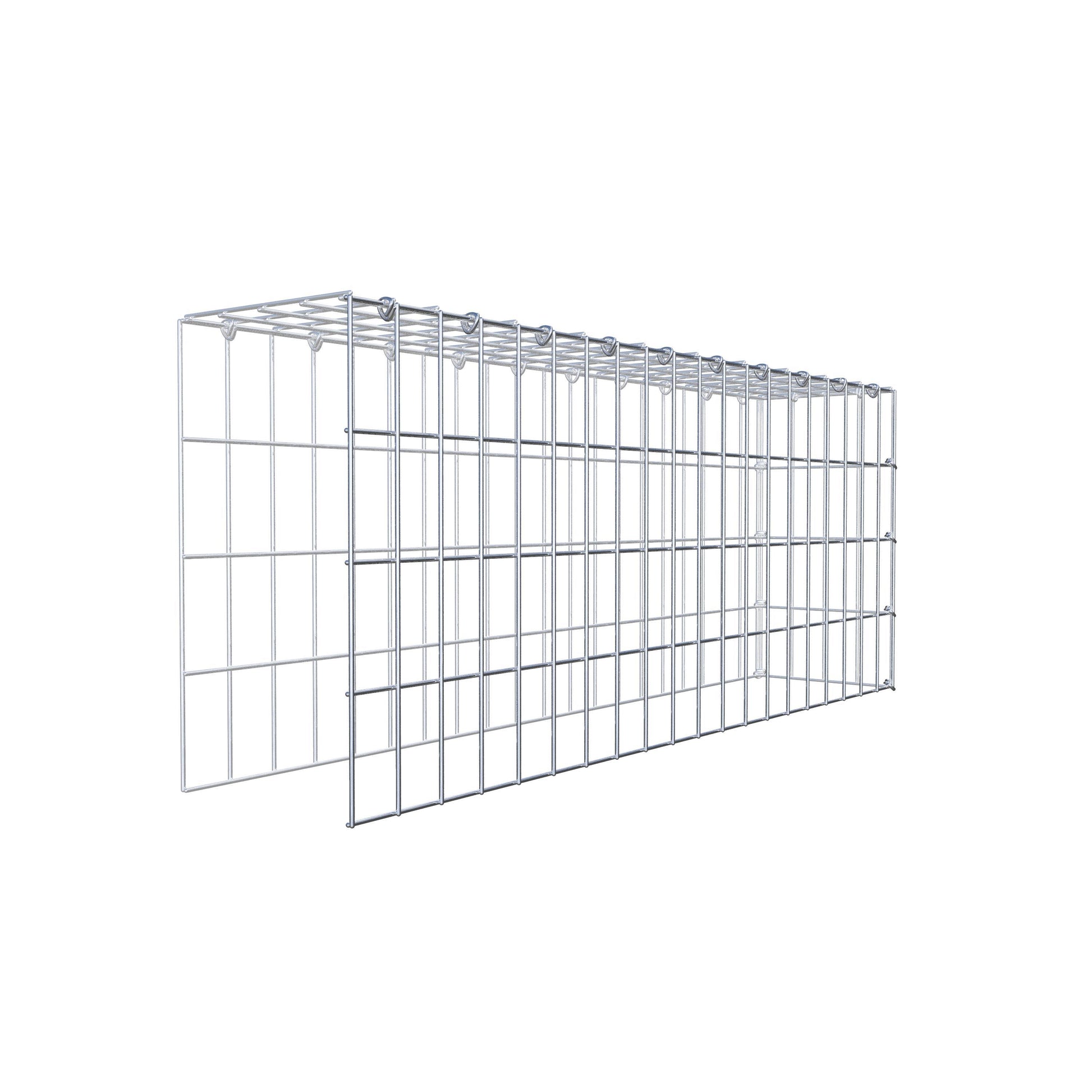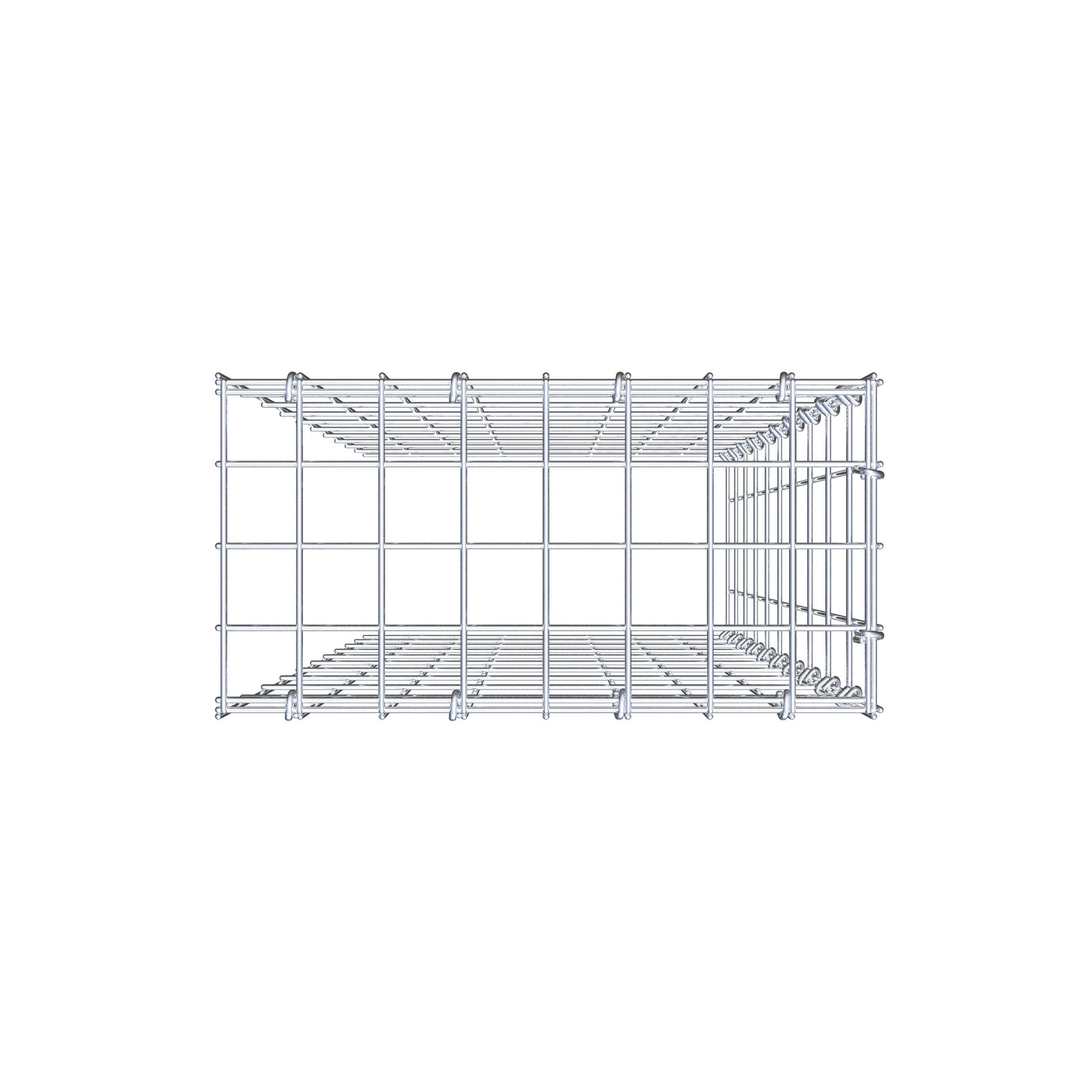 Este gabião não tem grade frontal e inferior. Isso permite que seu gabião cresça tanto em comprimento quanto em altura.