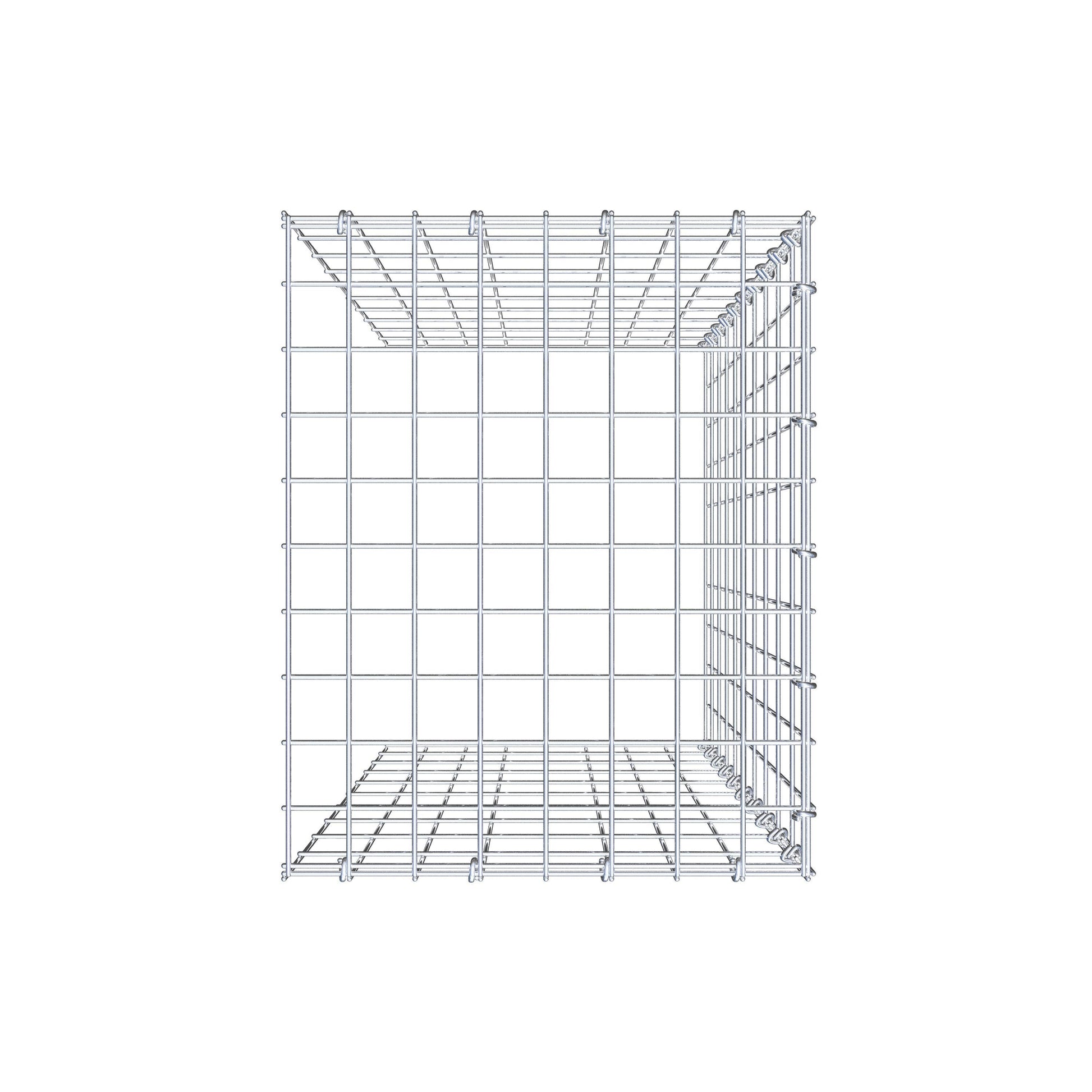 Este gabião não tem grade frontal e inferior. Isso permite que seu gabião cresça tanto em comprimento quanto em altura.