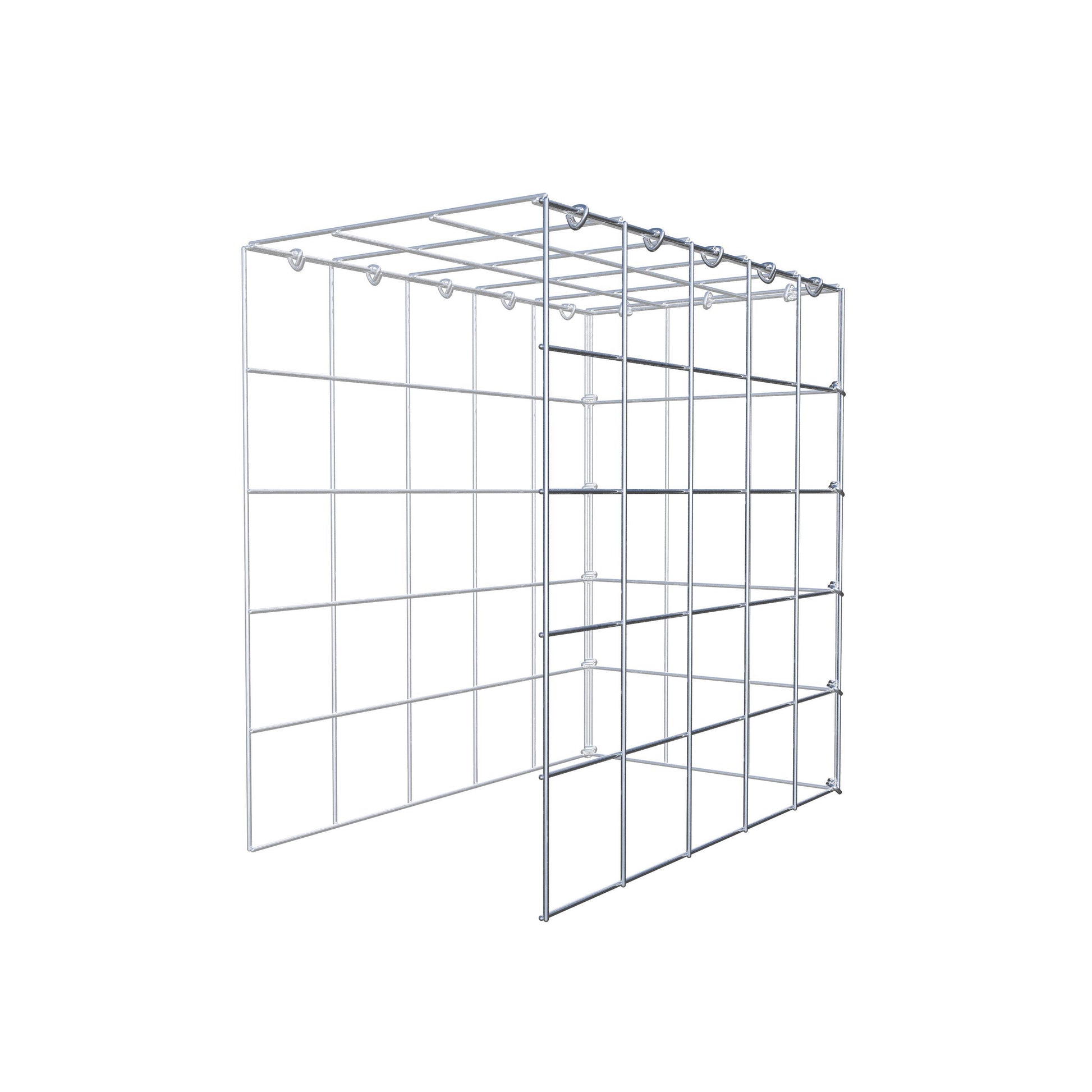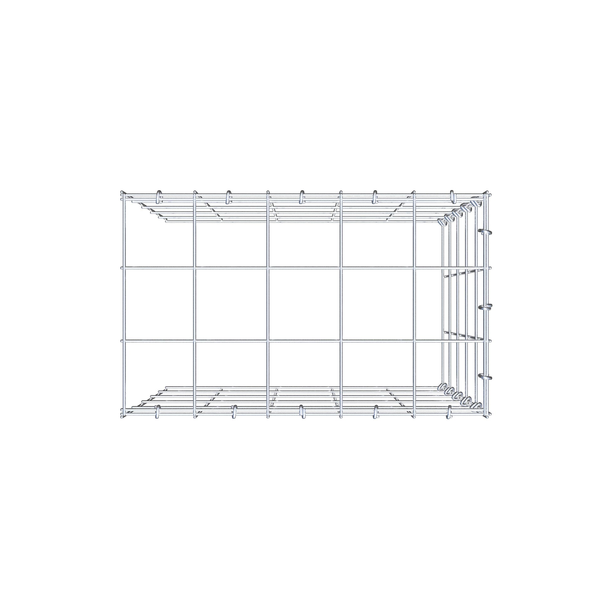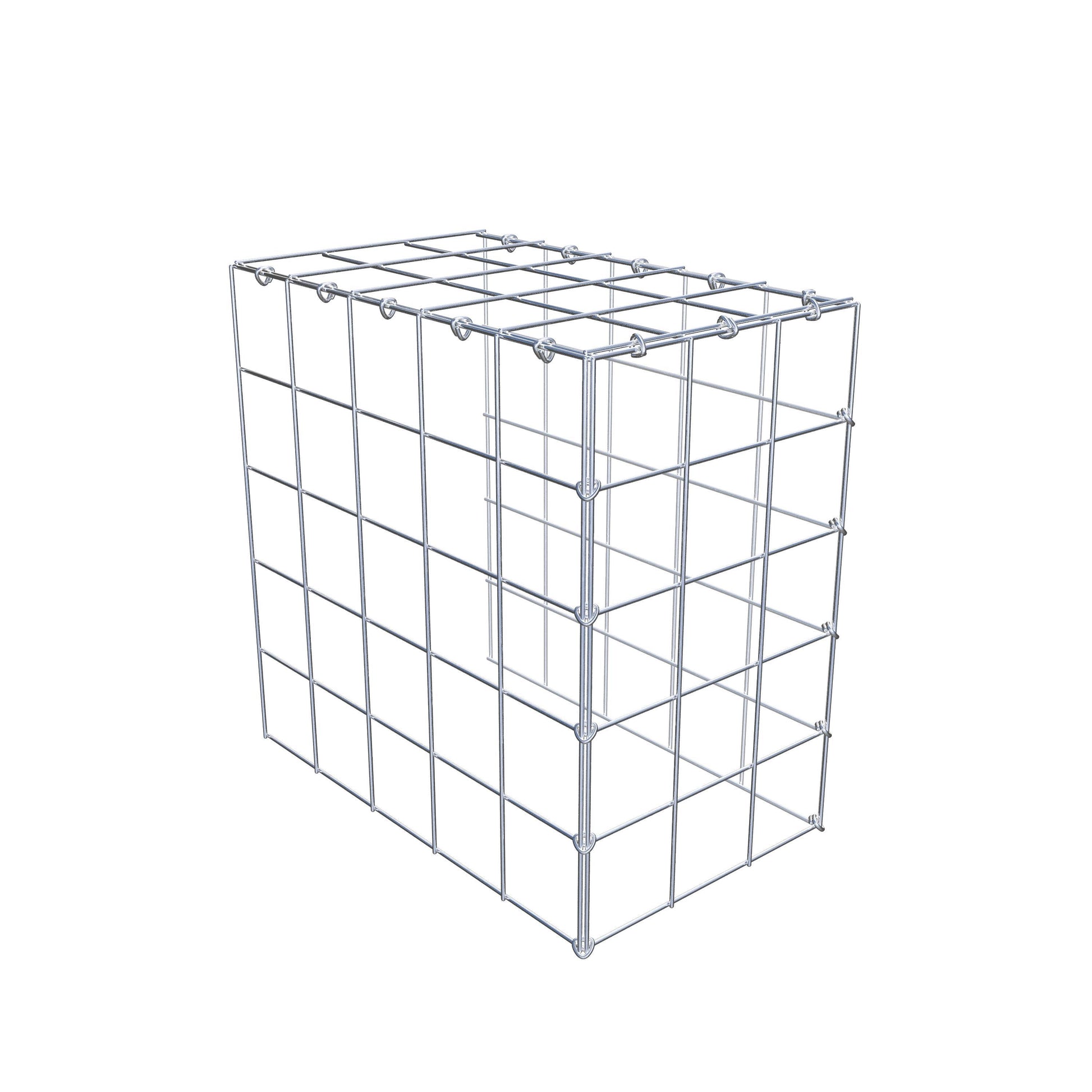 Este gabião não tem grade frontal e inferior. Isso permite que seu gabião cresça tanto em comprimento quanto em altura. Observe que o