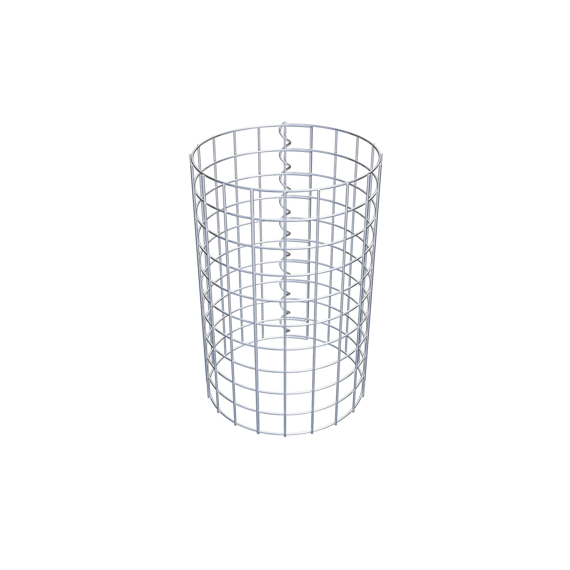 Sidostängningen görs vid den enda överlappande punkten på gallret med en spiral som helt enkelt skruvas in och pressas ihop. Detta skapar en ren, säker och permanent anslutning. Alternativt kan gabionpelaren också stängas med clips, som finns tillgängliga separat. Pelarna är öppna upptill och nedtill - ett markgaller eller täckning behövs inte och ingår därför inte i leveransen.