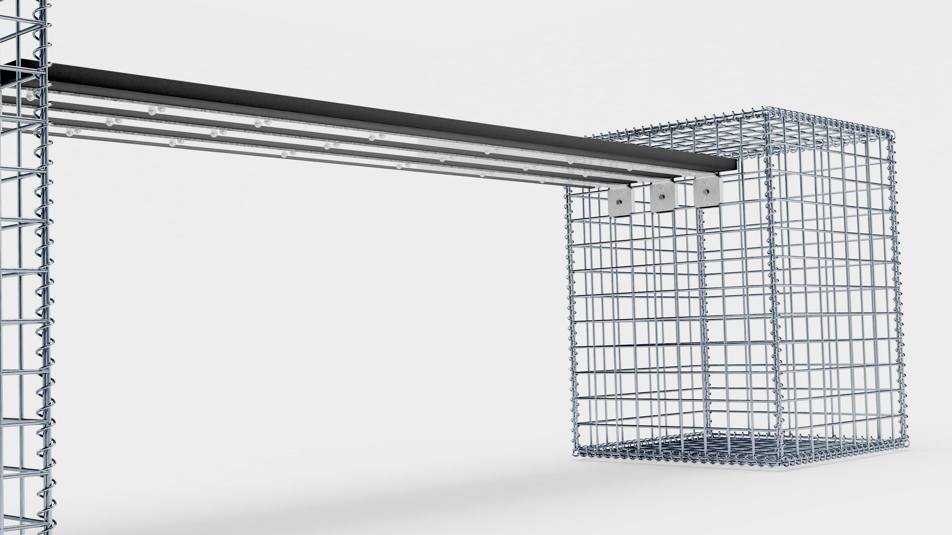 Den här snygga gabionbänken kombinerar modern design, hållbarhet och slitstyrka. Två robusta spiralgabioner i galvaniserat stål utgör grunden, medan underredet i antracitfärgad åter vunnen plast ger en väderbeständig och lättskött sittplats. Perfekt för trädgården, uteplatsen eller entrén - robust, elegant och miljövänlig.