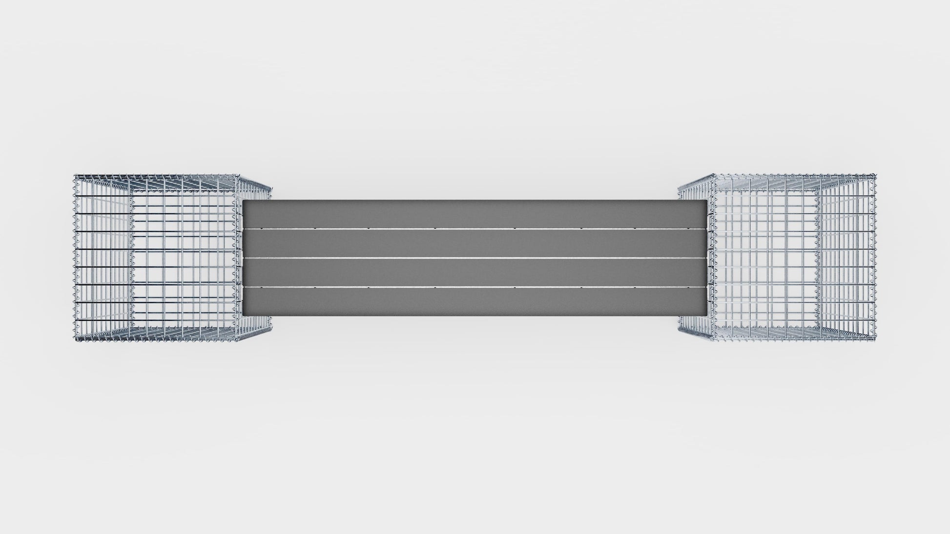 Modern och underhållsfri - gabionbänk med 2 spiralgabioner och yta av återvunnen plast i antracit